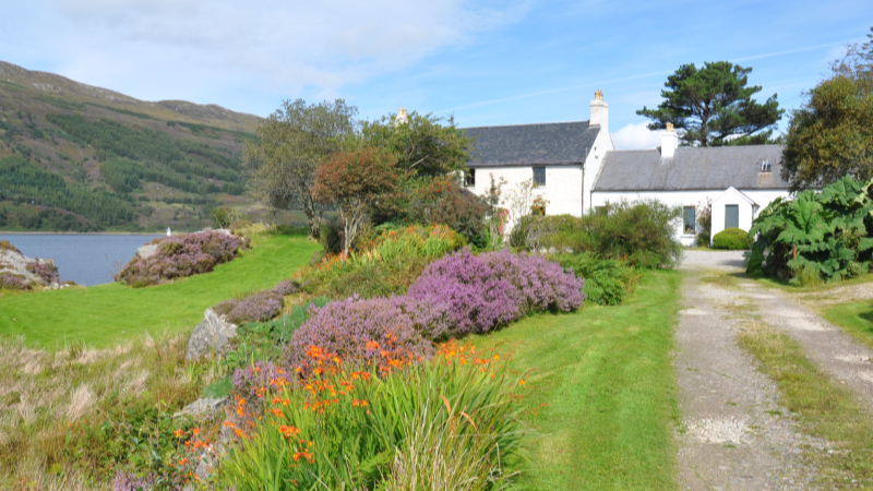 Ferry House is set on a rocky promontory within a few yards of the sea, and is positioned where the Isle of Skye is closest to the mainland. Originally an inn, the house faces south, and commands a wonderful view down the Sound of Sleat to Sandaig and Knoydart, and over the sea to Skye.
